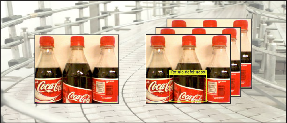 Além disso, essa tecnologia possui a flexibilidade de utilizar modelos treinados em problemas similares como um ponto de início para resolver um novo problema. Dessa forma, é possível otimizar as métricas de precisão e também economizar tempo de treino, visto que é necessário entregar ao modelo menos imagens para o aprendizado. Outro aliado da visão computacional são os algoritmos de detecção de objetos, que também partem de modelos pré-treinados em competições, e são necessários para localizar precisamente defeitos em objetos. Um exemplo de aplicação disso é o controle de qualidade em garrafas de plástico que implementamos na Fox IoT, em que o modelo consegue encontrar precisamente a localização de um rótulo defeituoso e consequentemente classifica-o corretamente.