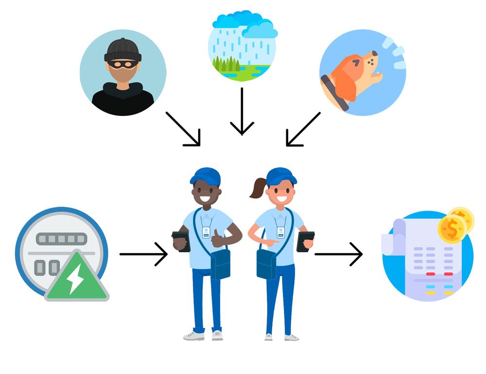Esse processo apresenta vários pontos negativos, como para o funcionário que realiza o trabalho, que fica exposto a condições climáticas adversas, erros na leitura e o grande intervalo de tempo entre leituras, realizadas uma vez ao mês.