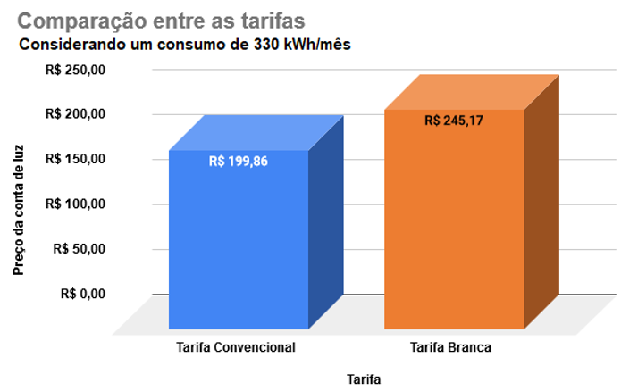Percebe-se que aderir à tarifa branca resultará em um aumento significativo na conta de luz. Entretanto, se a família conseguir deslocar o período de maior consumo de energia para o horário fora de ponta? A Figura 2 mostra o resultado desta ação.