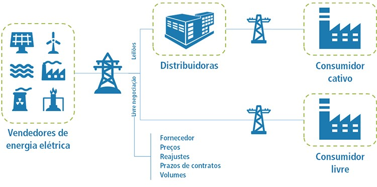 Ok, existem tarifas em que os consumidores compram a energia da concessionária de sua região, chamado de mercado cativo, mas isso também pode ser alterado, como? No Mercado Livre de Energia.